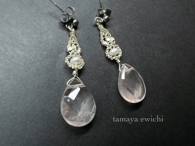 ローズクォーツと淡水パールのピアス