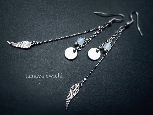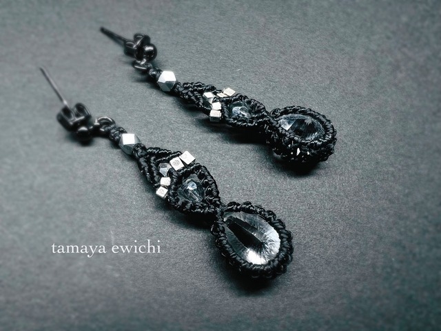 鳥が羽を広げたような コンケーブカットされたクォーツに メタルコーティングされた水晶を連ね 刻印されたカレンシルバーを編み込んだ ブラックカラーのピアスをお創りしました。 小粒ながらコンケーブカットされたクォーツの 奥行と輝きをお楽しみいただけるピアスです。 ※イヤリングに変更可能です。 ご希望の場合には下記にてご選択ください。 ◆サイズ:約35mm ◆主な使用素材: クォーツ/水晶/メタルパーツ カレンシルバー(SILVER925) ワックスコード/ピアスパーツ他 ※天然の素材のを使用しておりますので インクルージョン(内包物)やクラック(細かいヒビ) などがございますことをご了承ください。 ※ご覧の環境により実物の色と異なる場合がございます。
