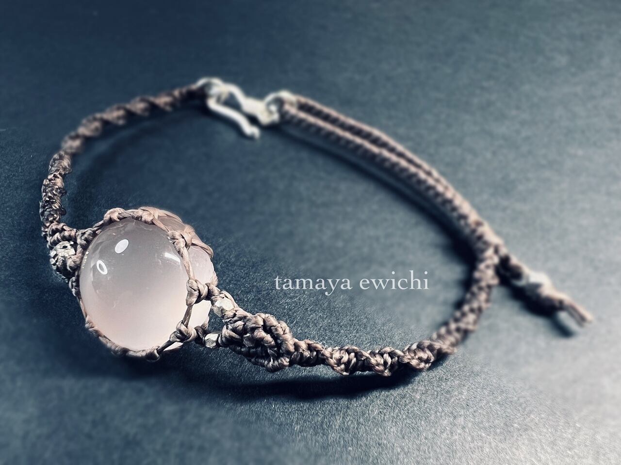 シルバーブラウンのワックスコードで編み上げたブレスレット。