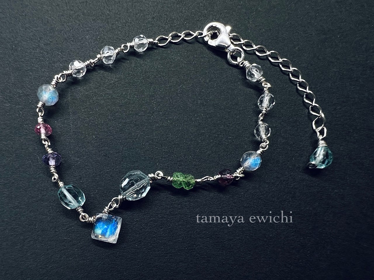 宝石質の様々な石を連ねてブレスレットをお創りしました。