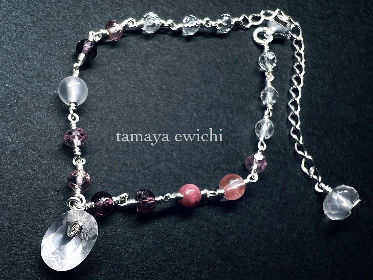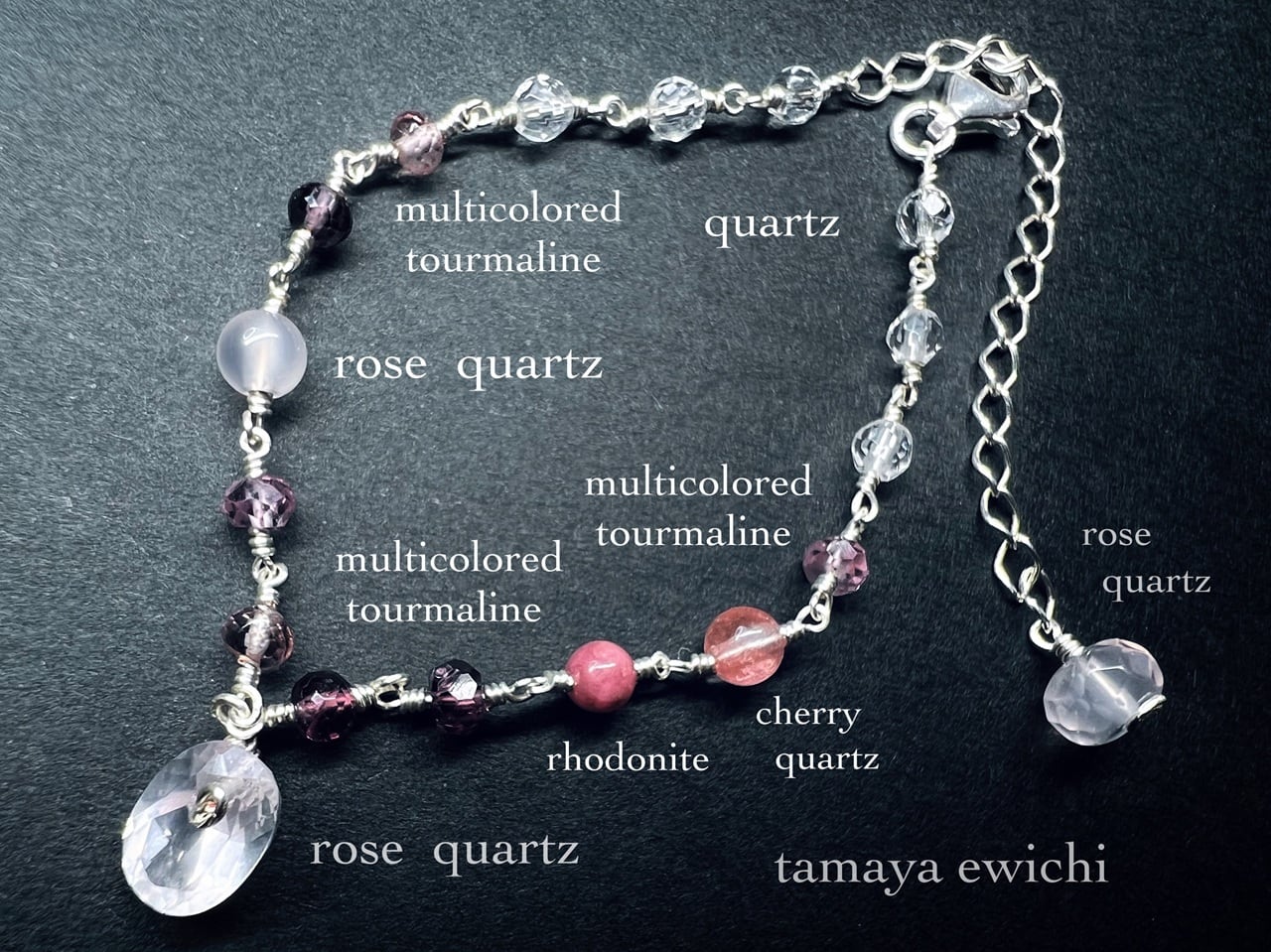 ピンク系の石を連ねたブレスレットをお創りしました。