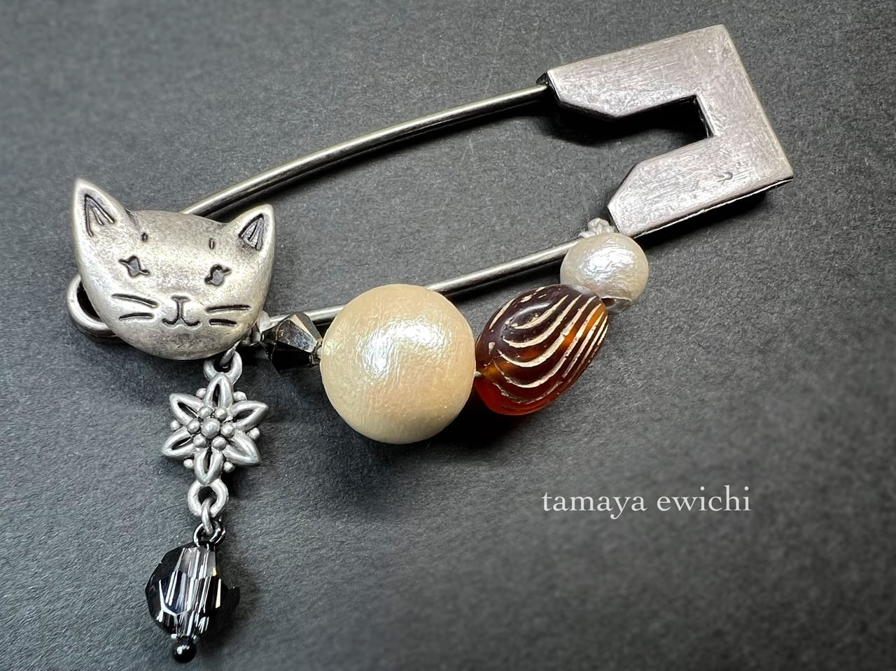 猫のチャームにアメリカンピューターとスワロフスキーエレメントを揺らし