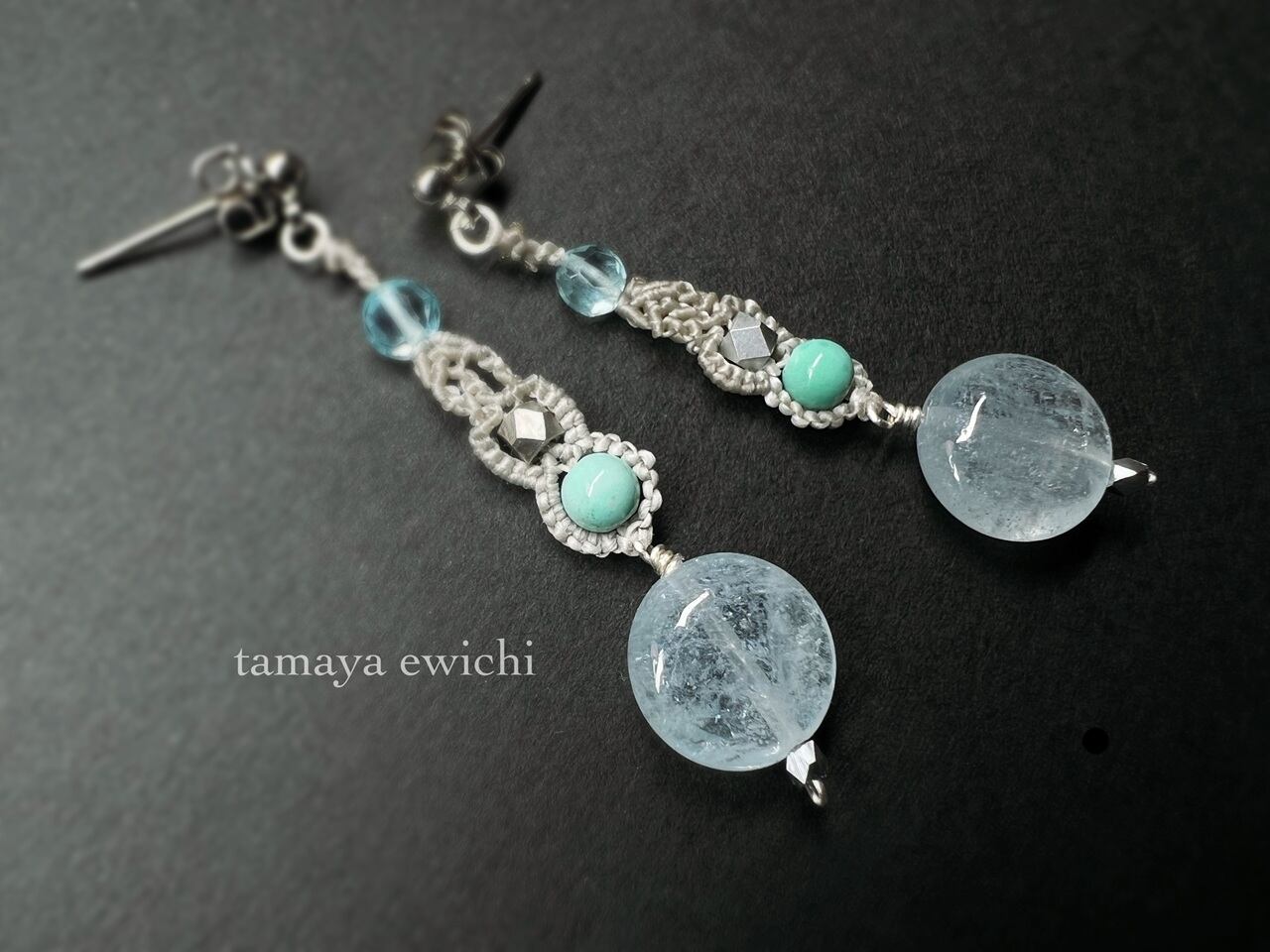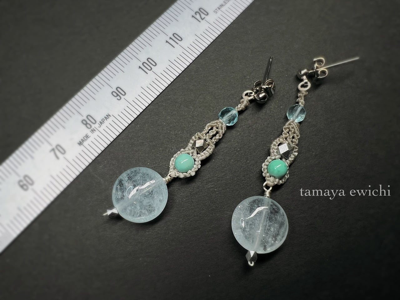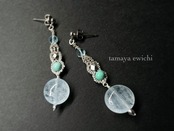 アクアマリンとブルーセラミック、アパタイトのピアス